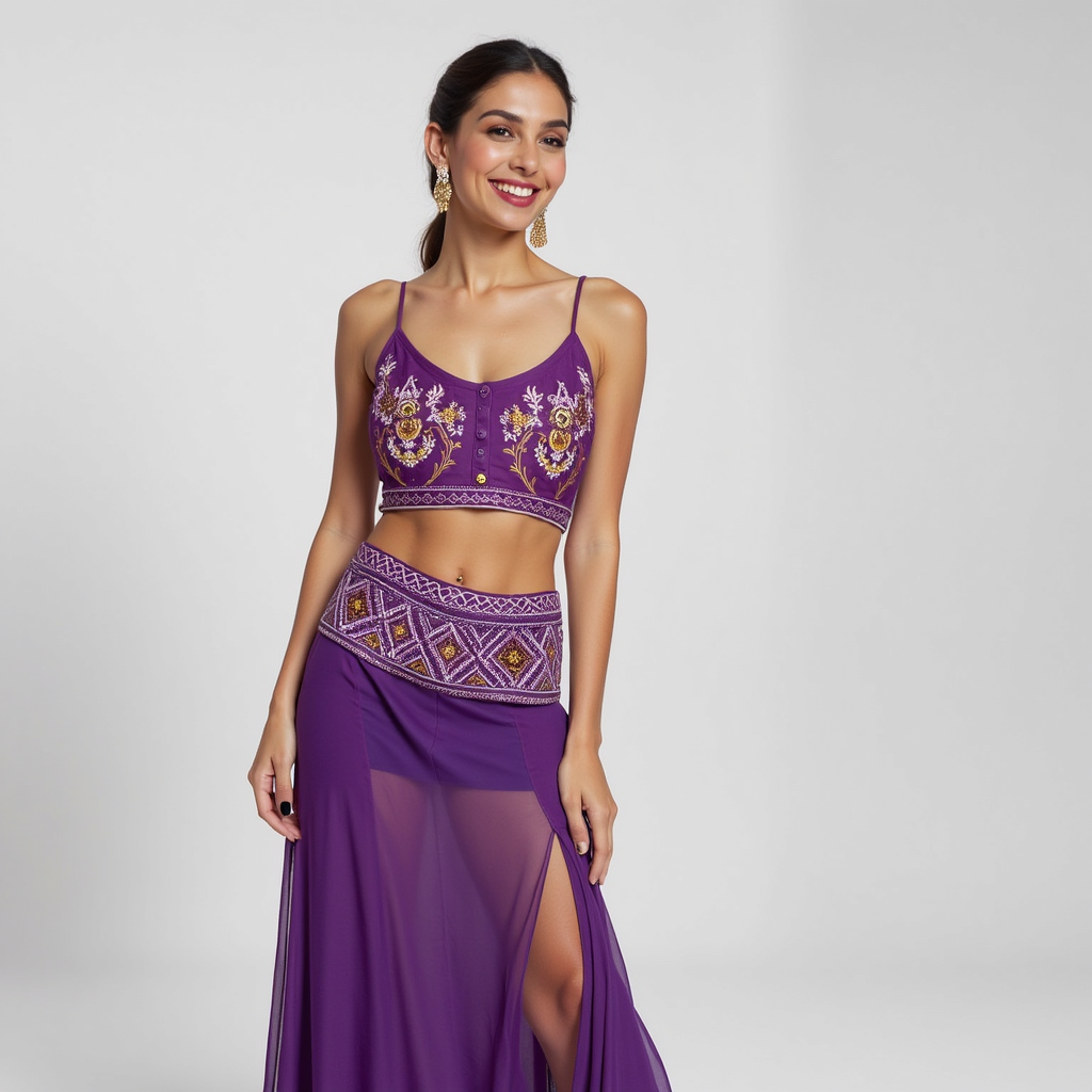 Product Description: Embrace the essence of springtime in our 'Bella' floral set, a captivating blend of delicate blossoms and vibrant hues. The fitted crop top features a flattering scoop neckline and adjustable spaghetti straps, perfectly complementing the flowing, high-low maxi skirt. Crafted from a lightweight, semi-sheer fabric, the skirt showcases a vibrant floral pattern that dances with every step.