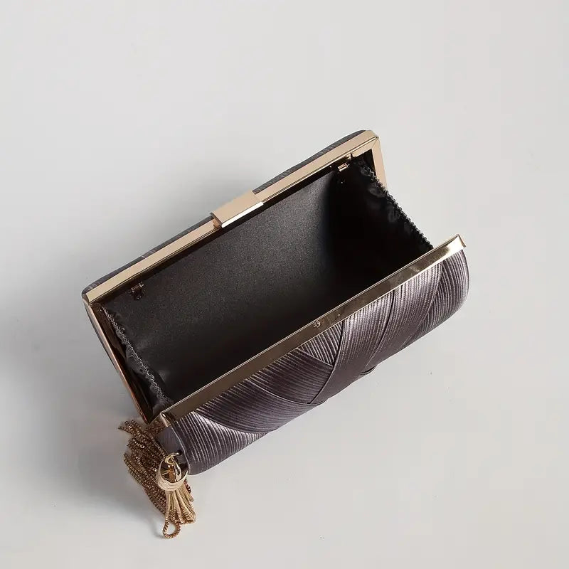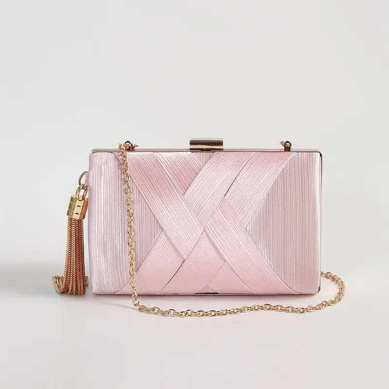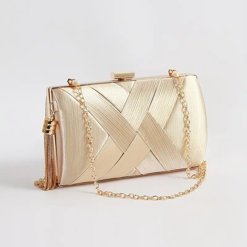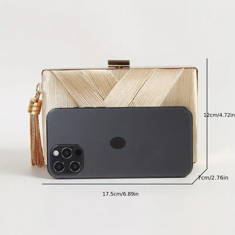 The Emery Clutch is a refined accessory crafted to complement a variety of occasions. Made from high-quality polyester with a smooth solid-color finish, this clutch boasts a secure buckle closure for added sophistication. The elegant champagne hue offers a timeless appeal, making it suitable for both formal and casual settings. Inside, the polyester lining ensures durability and easy maintenance; to preserve its shape and finish, washing is not recommended. The Emery Clutch is a versatile choice for those seeking understated elegance.