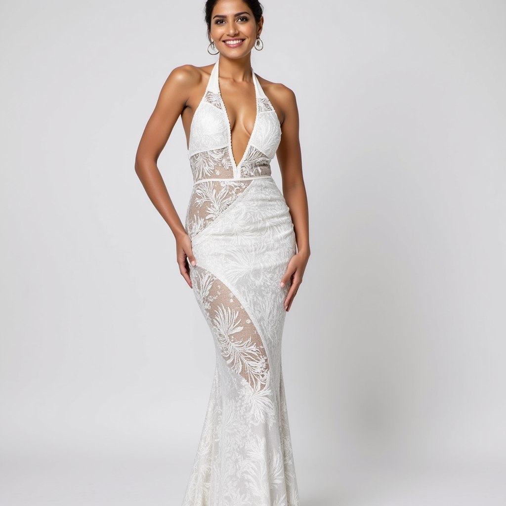 - Halter neck with a daring plunge neckline