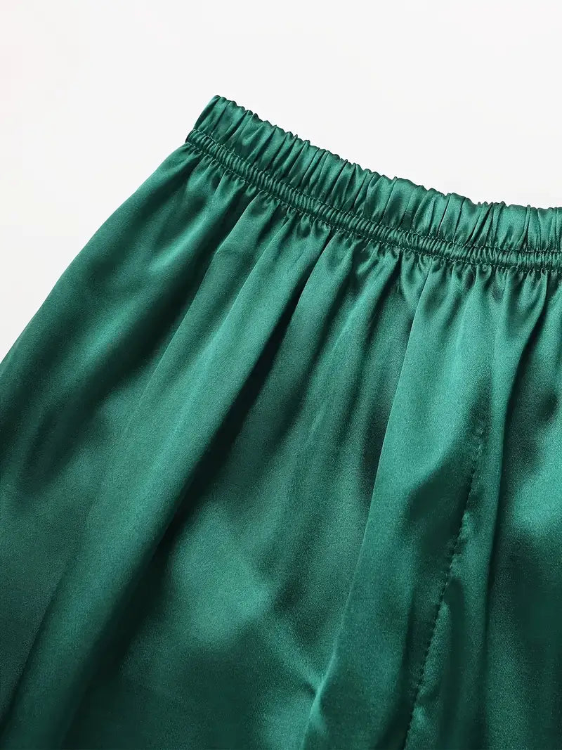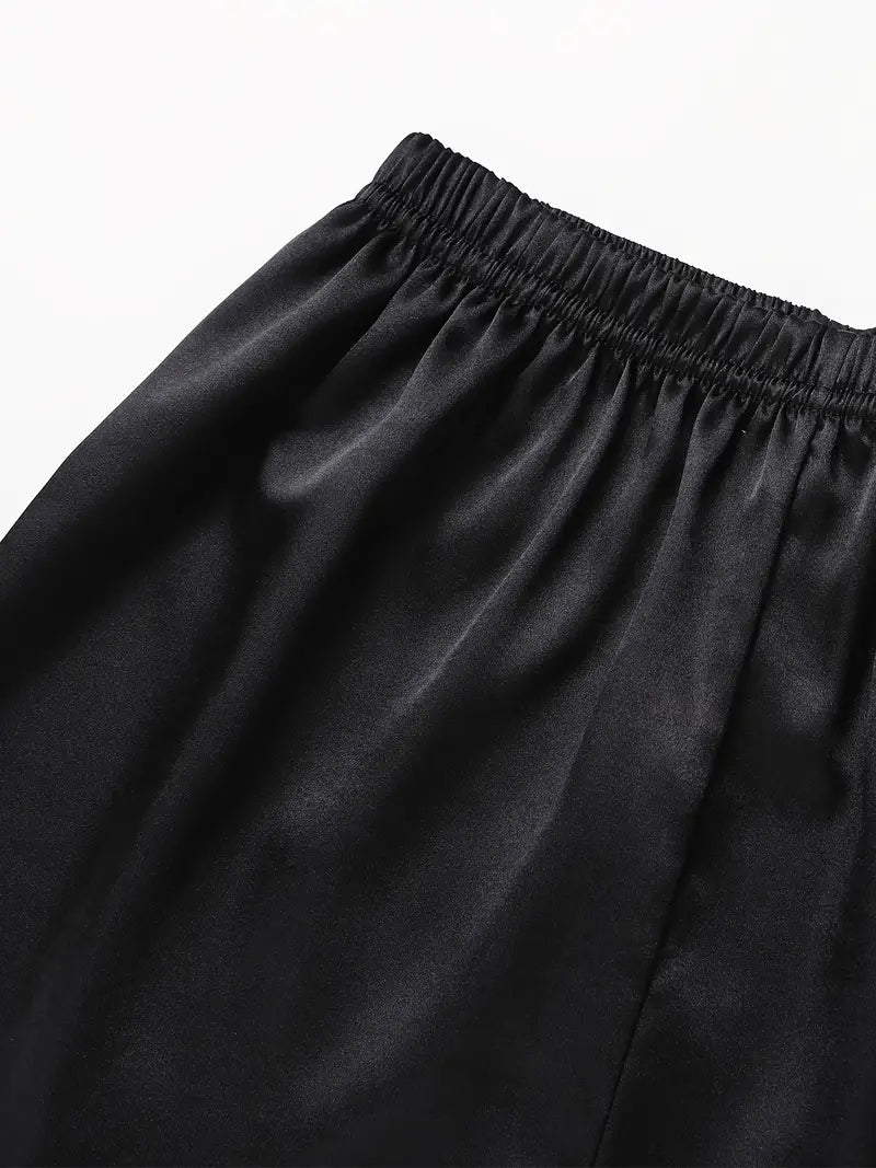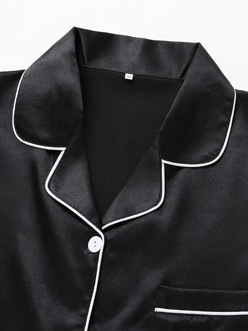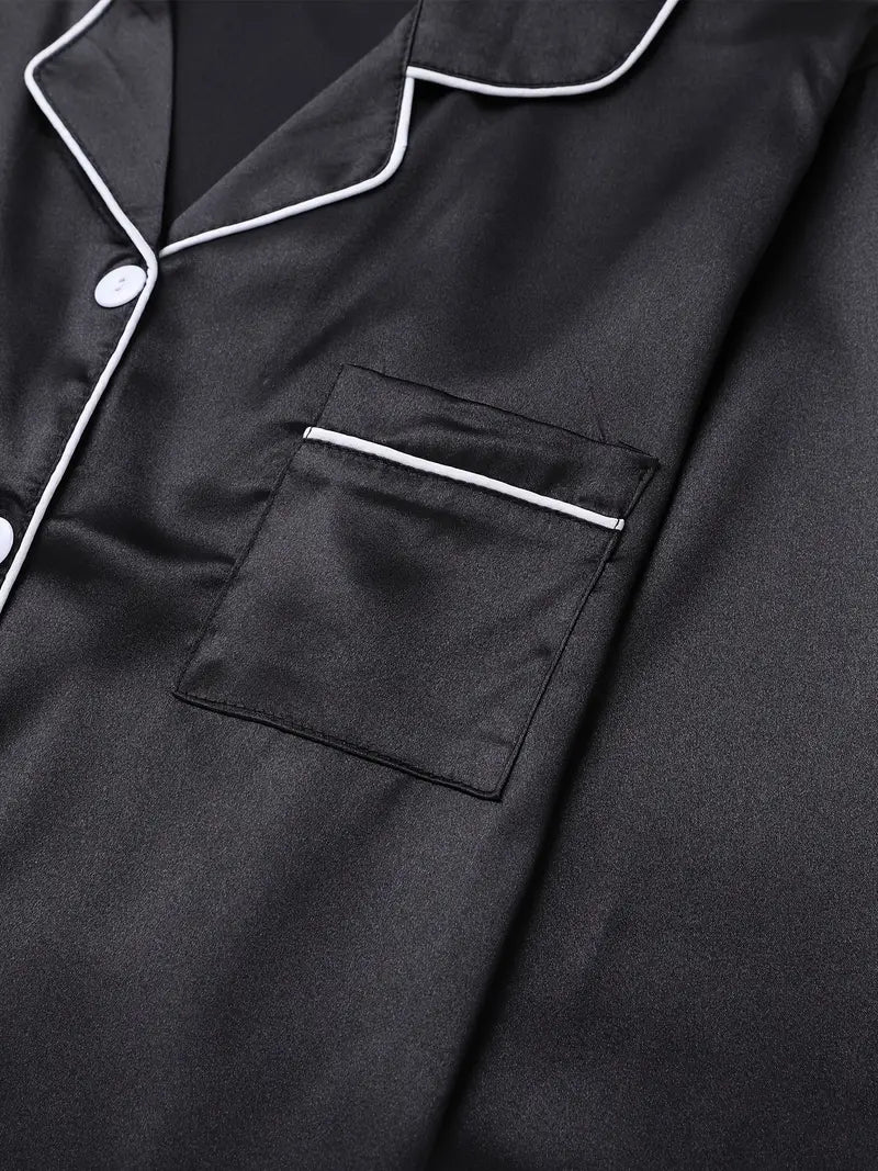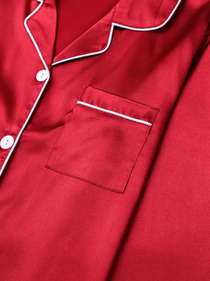 The Sierra Pajama Set offers a blend of elegance and comfort, crafted from a smooth woven fabric of 95% polyester and 5% elastane. Designed for teens, this polished set features a classic lapel collar and button-up detail, perfect for all-season relaxation or casual lounging. Its non-sheer, solid color fabric ensures a sleek look, combining style with ease. With easy care instructions—machine washable or suitable for professional dry cleaning—the Sierra Pajama Set is an ideal choice for refined, everyday comfort.